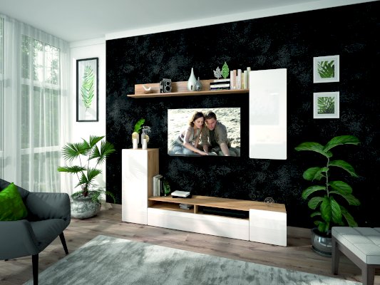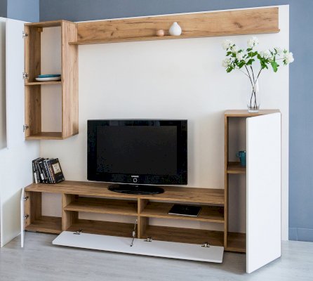• Гостиная состоит из двух частей: монолитной напольной и навесной.