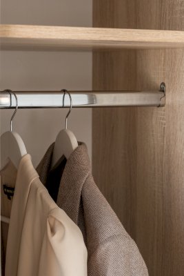 Шкаф для спальни или гостиной имеет важное практическое значение. Данная модель оснащена 4-мя распашными створками, за которыми скрыто 3 отделения: 2 боковых с вместительными полками под сложенную одежду или белье, центральное с 2-мя полками и штангой для одежды на плечиках.