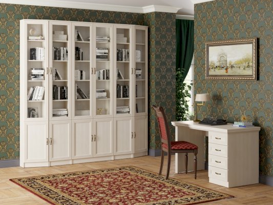 Ручка-скоба выполнена из металла бронзового цвета. Она удобна в использовании и проста в установке. В коллекции 5 модулей, их количество оптимально для создания композиции для кабинета. Стол письменный можно использовать и как самостоятельный предмет интерьера в жилых и офисных помещениях.