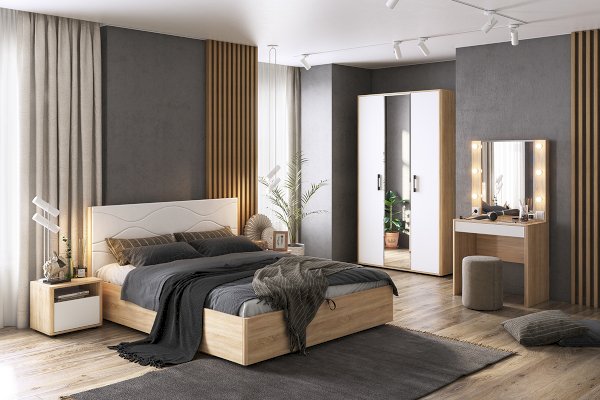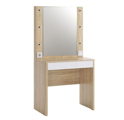 Оригинальное и стильное трюмо из серии «Зара». В зеркало с широким фацетом, встроена подсветка c 6 лампочками, как в столах профессиональных визажистов. Дополнительно имеется выключатель, розетка для фена и выдвижной ящик для украшений и косметики. Закругленные углы, подчеркивают общий стиль коллекции.