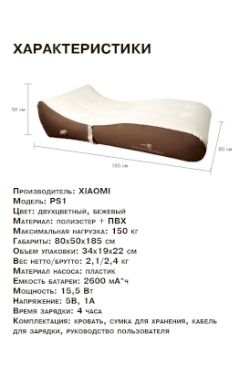 Надувная кровать для отдыха PS 1 (Xiaomi) - за 10 023 руб. в Ногинске. Купите на сайте noginsk.onlinemarketmebeli.ru или по телефону 8(800)505-30-63 уже сегодня! Уточнить наличие, комплектацию, актуальную цену можно бесплатно у менеджера ежедневно. Закажите Надувная кровать для отдыха PS 1 (Xiaomi) до конца акции! Доступна покупка в кредит, рассрочку. Доставим со склада или на заказ.