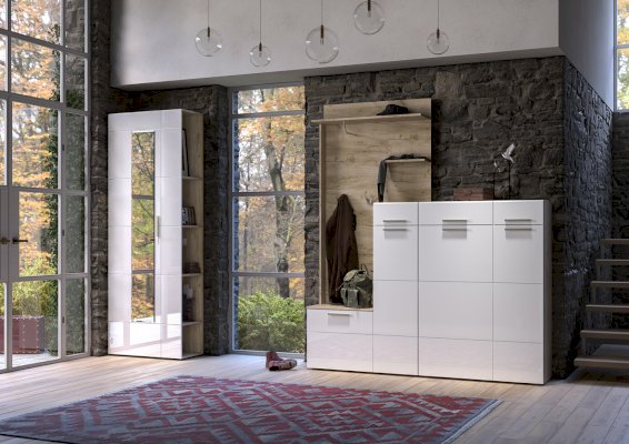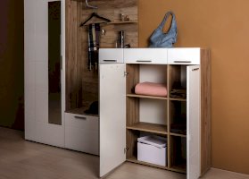 Универсальный модуль этой прихожей может быть дополнен шкафом для одежды.