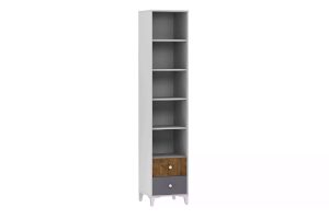 Шкаф-пенал «Морти» – обустроен 5 нишами-полками  и двумя выдвижными ящиками, что превращает его в удобное и вместительное место для хранения. Такой шкаф хорошо использовать для декорирования комнаты. Вы можете легко вписать этот предмет интерьера в пространство любой площади.