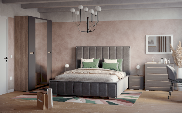 Стильная кровать Наоми – это прекрасный выбор для спальни. Выполненная из ЛДСП и МДФ в комбинации двух цветов, она будет отлично смотреться в интерьере любого стиля. Модель двуспальной кровати всегда можно дополнить модулями из одноименной коллекции мебели и создать законченный образ спальни.