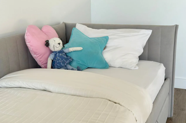 Комфорт вашего сна обеспечивают мягкие элементы изголовья, боковин, корпуса и фасадов ящиков, обитые нежным велюром. Эта уютная обивка не только добавляет эстетическую ценность, но и делает кровать более безопасной, особенно для детей. Кроме того, высококачественный наполнитель из ППУ обеспечивает отличную поддержку и комфорт во время сна.