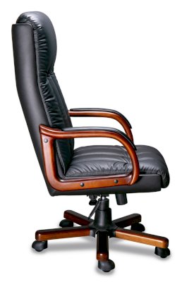 Кресло с высокой спинкой, с подлокотниками прямоугольной замкнутой формы с мягкими накладками обитыми в цвет кресла.