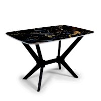 Столешница данного стола изготовлена из МДФ 16 мм, с применением фотопечати, рисунок которой защищен нанесением слоя специального лака. Одной из особенностей этого обеденного стола являются его ноги в форме крестовины. Это придает столу не только эстетическую привлекательность и индивидуальность, но и функциональность, так как данная форма ног гарантирует стабильность и прочность изделия.