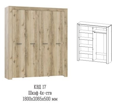Четырехстворчатый шкаф Квадро-17 (Астрид-Мебель)