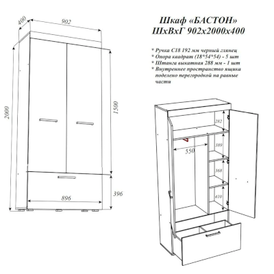 Шкаф Бастон (Эра) - за 12 440 руб. в Ногинске. Купите на сайте noginsk.onlinemarketmebeli.ru или по телефону 8(800)505-30-63 уже сегодня! Уточнить наличие, комплектацию, актуальную цену можно бесплатно у менеджера ежедневно. Закажите Шкаф Бастон (Эра) до конца акции! Доступна покупка в кредит, рассрочку. Доставим со склада или на заказ.