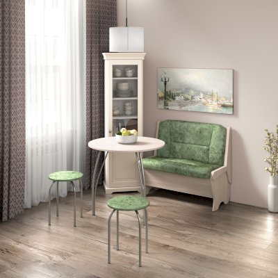 Можно самим собрать уголок из диванчиков нужного Вам размера - двух больших, двух малых или разноразмерных, как в классическом варианте, подобрать любой понравившийся кухонный стол, табуреты или стулья.