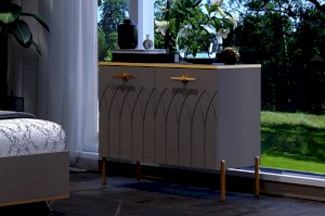 • В качестве лицевой фурнитуре в комоде использованы металлические ручки в цвете золото.