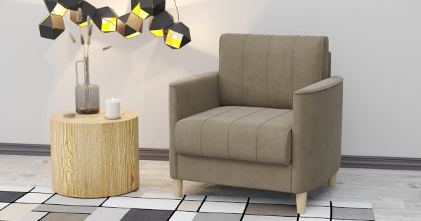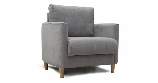 Комплект состоит из прямого и углового диванов, кресла для отдыха и пуфа.